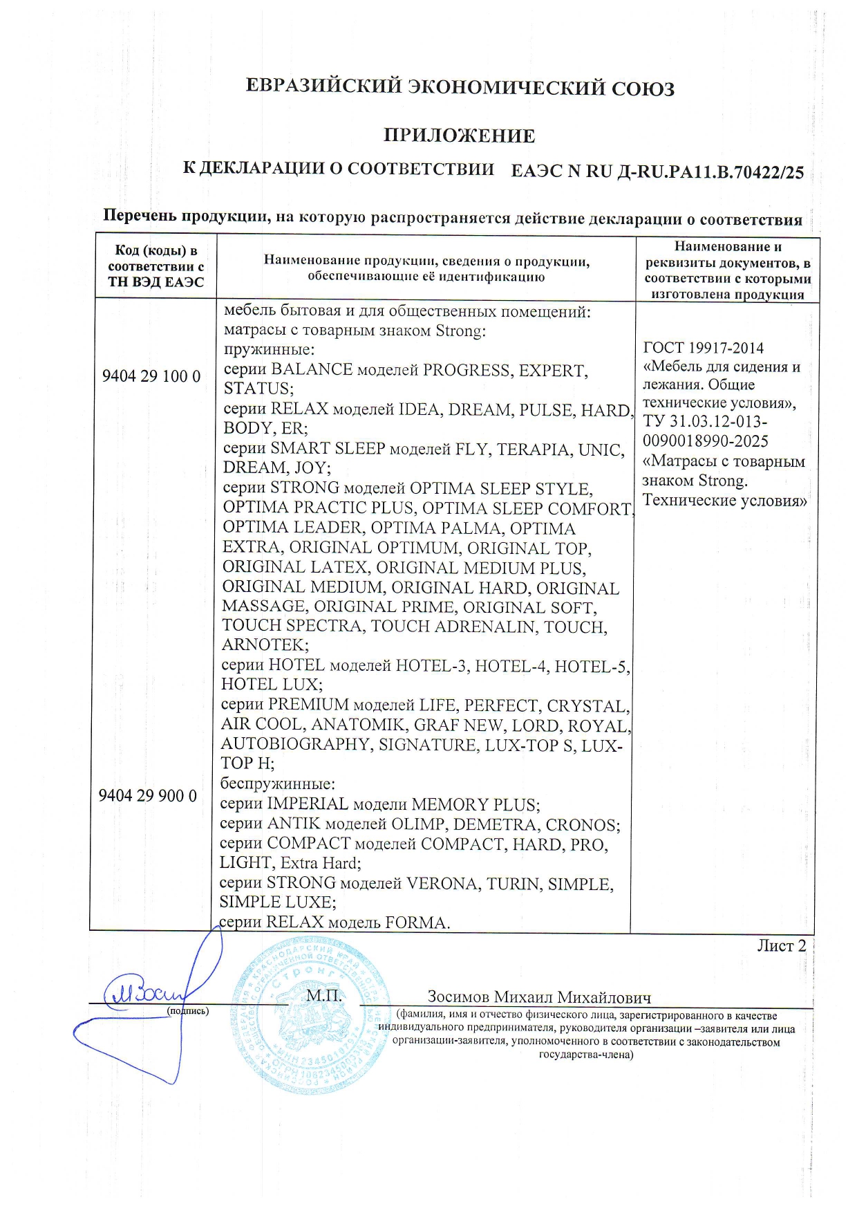 • Комфортный слой с эффектом памяти Strong Memory Foam
